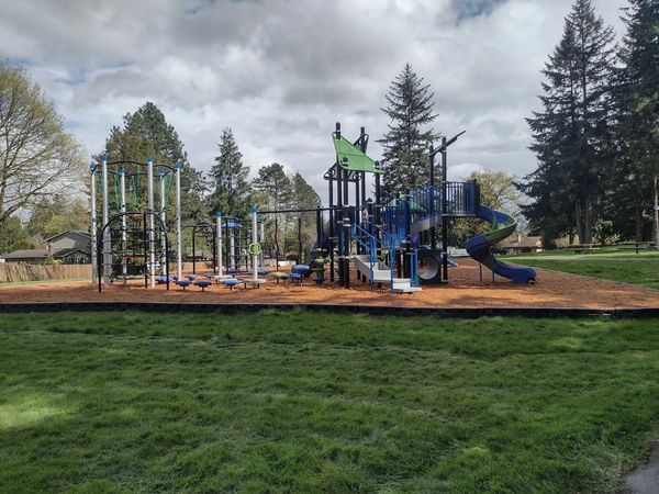 Renovated black top basketball court, fencing & gate at Allen Park (May 2022)